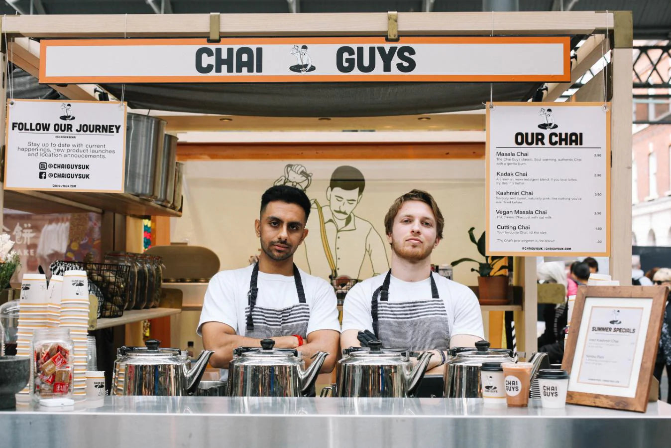Chai Guys started in 2019 as a humble Chai stall in London's famous Old Spitalfields Market. Cofounders, Abhilash and Gabriel, worked hard and built a strong reputation as "Probably the best Chai in London".
