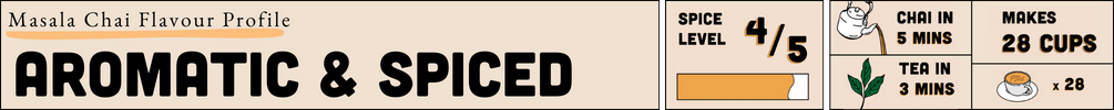 This tin contains our classic Masala blend, with a balanced mix of spices and tea. Follow our simple recipe here to create our Masala Chai with its gentle ginger burn, or simply steep our blend in hot water for a beautiful, aromatic tea.